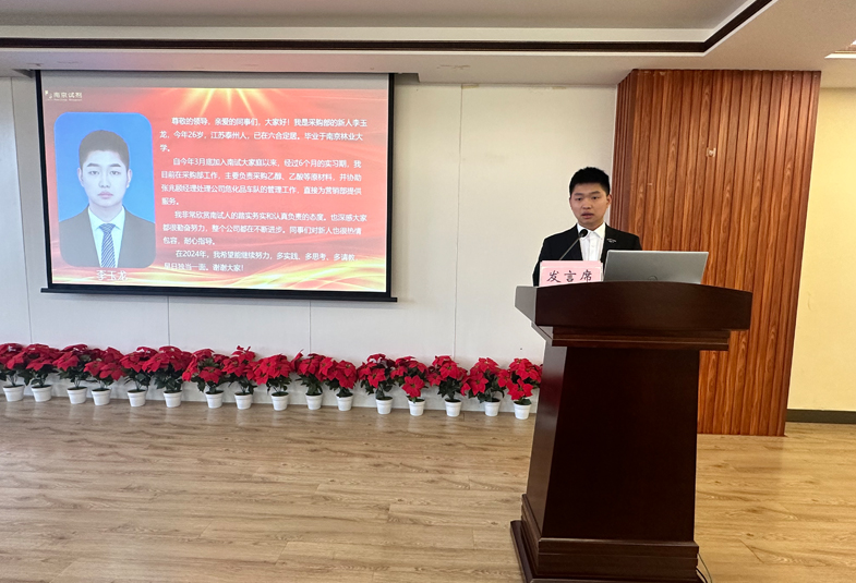 上午8時30分,會議在熱烈的掌聲中開始。首先,營銷新人代表分享了加入南試團隊后的收獲與體會,并表示將加強學習,充實自我,增長才干。