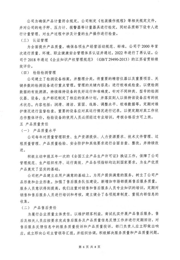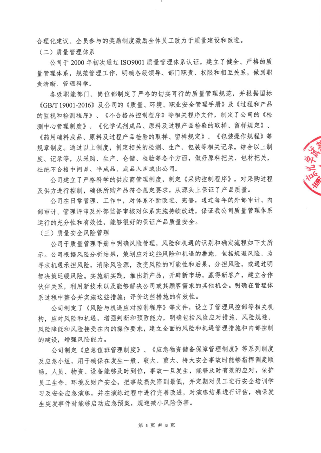 《南京化學(xué)試劑股份有限公司質(zhì)量信用報告》回顧了南京化學(xué)試劑在質(zhì)量管理、產(chǎn)品質(zhì)量責(zé)任、質(zhì)量誠信管理等方面的方針、制度、措施及取得的成效。關(guān)于報告的內(nèi)容,說明如下:
